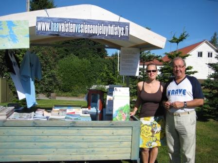 Haavaisten vesiensuojeluyhdistys pyrkii monin eri keinoin keräämään jäseniä ja varoja vesialueensa pelastamiseksi. Yhdistys on mukana tapahtumissa ja yhteydenottoja otetaan eri instansseihin varojen keräämiseksi. ![]() Puheenjohtaja Mikko Suvanto ja ympäristöasiantuntija Katja Holttinen Suvipäivillä