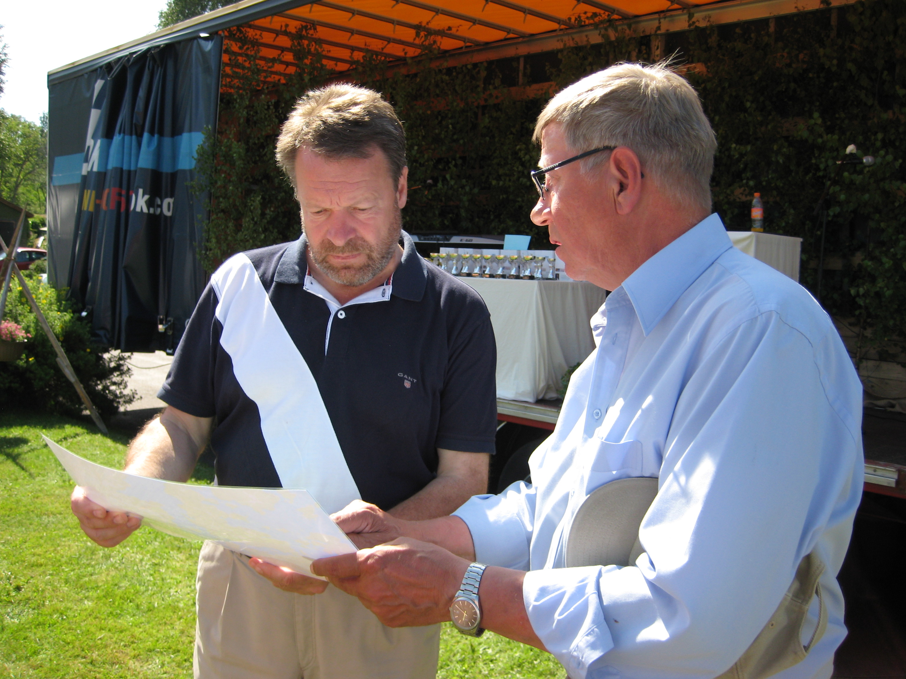 ![]() Suvipäivillä Touko Verho esittelemässä Ilkka Kanervalle yhdistyksen tavoitteita